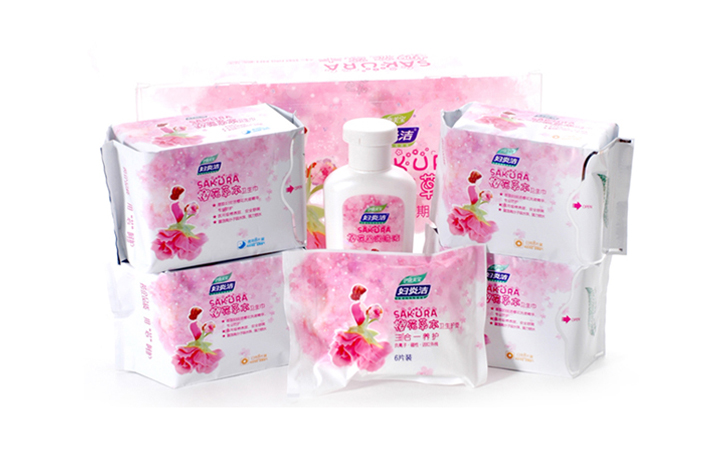 【規 ? ? ? ?格】每套有櫻花草本衛生巾日用8片/包*3包、櫻花草本衛生巾夜用8片/包*1包、櫻花草本衛生護墊 6片/包*1包、櫻花盈潤洗液150毫升/瓶 *1瓶